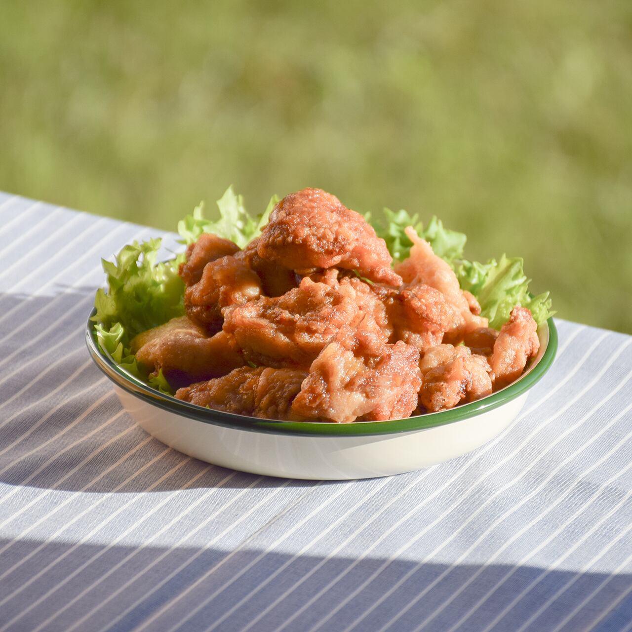 ・原材料名:鶏肉(国産)、小麦粉(阿波市産)、なたね油、醤油、食塩、花椒、胡椒、乾燥ガーリック、(一部に小麦・鶏肉を含む)