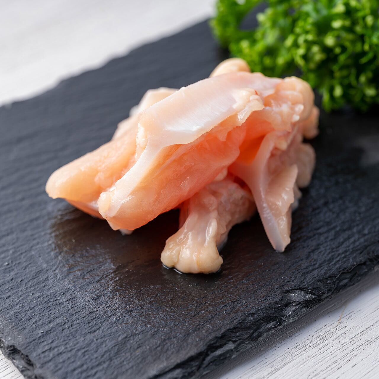 新鮮な四国産鶏肉をカット・串刺し後、生のまま種類別に袋詰め冷凍しています。